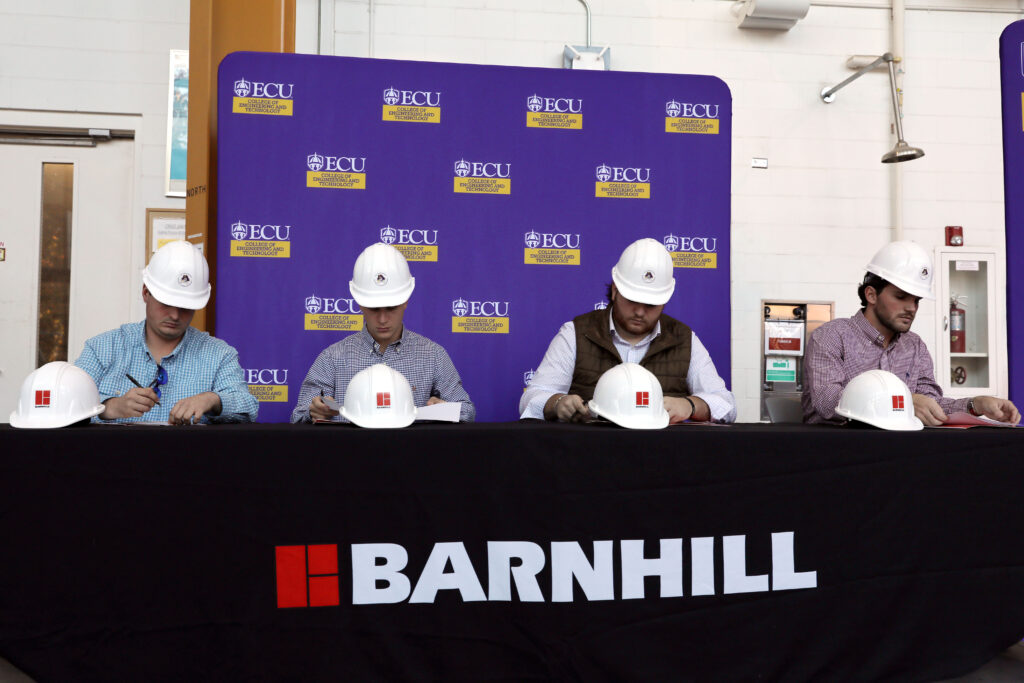 In November 2025, we were honored to partner with ECU’s Construction Management Department for our second “Signing Day” for four of our summer interns. As these students become employees, we encourage them to carry forward the values that define us. “The people you meet and the things you build WILL be life-changing – I promise you,” says Matt Turner, Vice President of Barnhill Building Group. Click here to read an article from ECU.
