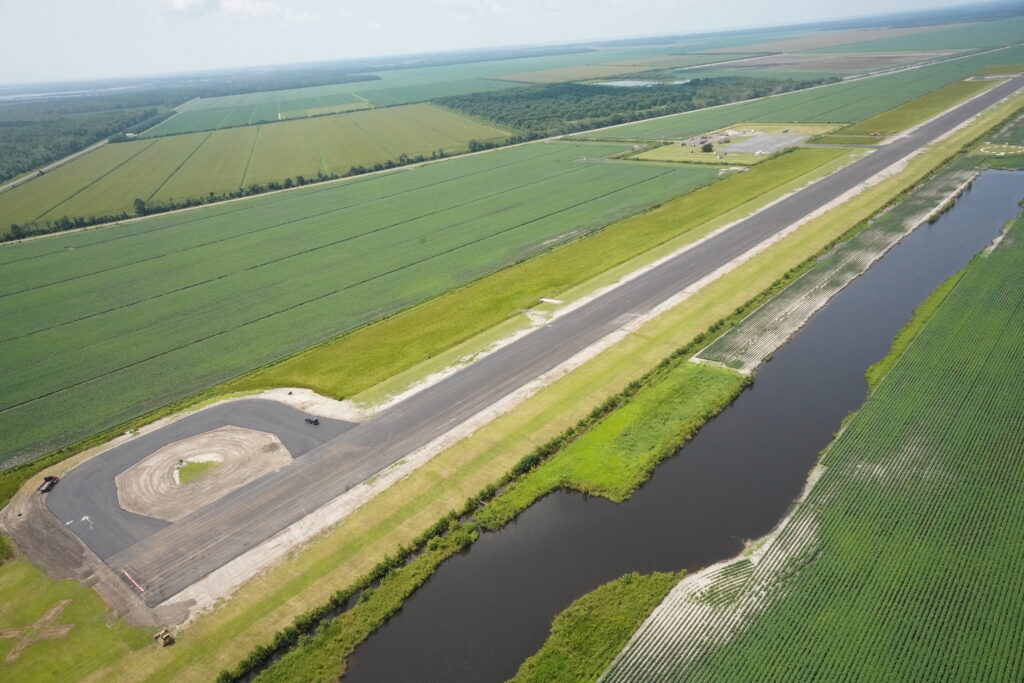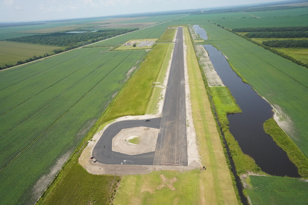 Because of the airport’s significance to the area and its many years of usage, it was in need of some upgrades. Funding became available and Barnhill was selected in July 2023 to complete this work. Construction began in August 2023. The scope of work included turnarounds at each end of the runway as well as a longer runway to allow for larger aircraft and increased safety standards. A PAPI (Precision Approach Path Indicator) lighting system was also incorporated. This is a visual aid to help pilots maintain the correct approach angle during landing and is especially useful at smaller airports where advanced navigation systems may be less common.